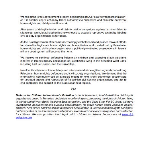 They may be able to close us down. They can seize our funding. They can arrest us. But they cannot stop our firm and unshakeable belief that this occupation must be held accountable for its crimes